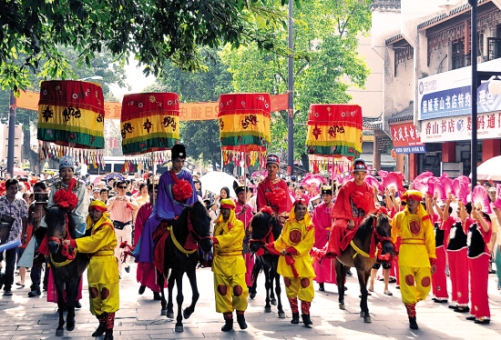 本報(bào)德慶訊 通訊員談細(xì)育攝影報(bào)道:昨天上午,廣東德慶縣城的宋街和孔廟羅傘羅帳處處,鼓樂齊鳴,四名“狀元”穿著宋代服裝騎著高頭大馬巡游。原來,這里正上演第八場、也是最后一場“狀元禮”。八年來,共有30多名高考“狀元”到廟中參禮, 隨著明年不再公布“狀元”,這一備受爭議的“狀元秀”也將成為歷史。