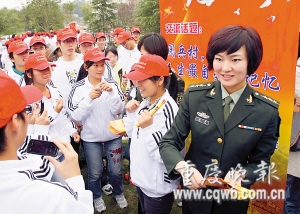 為讓學子們感受當兵的光榮,市征兵辦還請來三位“形象大使”現場宣傳。她們是三醫大的唐甜和楊菁,以及重慶警備區女戰士唐勇。唐甜和楊菁是國慶閱兵式上女兵方陣的一員,她們在閱兵式上的颯爽英姿讓人記憶猶新。而18歲的唐勇雖去年才入伍,但已榮立二等功。