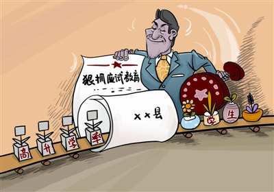 應當說,應試教育不是那一個地方的獨創,應試教育之害也是社會共知。但從新聞來看,沂水縣之所以要捧出“紅頭文件”的大棒來將應試教育狠抓落實,主要是基于 “今年沂水縣的高考嚴重下滑”的憂患意識!凹t頭文件”明確規定了改進的目標,即中考優秀率保持全市第一;本科進線人數、重點本科進線人數和萬人比全市第一!凹t頭文件”的分量,明顯體現在統一思想,確保貫徹執行之上。