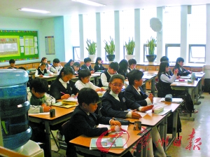記者參觀了成立于1961年的韓國慶熙小學,這個學校目前共有學生720人,六個年級,每個年級有4個班。據該學校的副校長介紹,該學校最大的特點是外語教學,記者參觀的當日,正遇到小學三年級的學生英語測試,采用的是老師與學生對話的形式。靈活實用的方法是值得我們國內的學校學習和借鑒的。