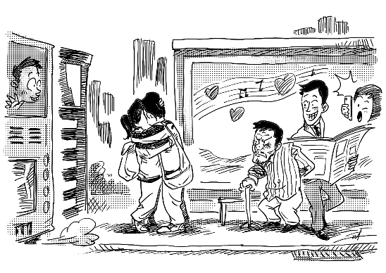 經常在這里等車的人都見過這對學生戀人。初三女學生小張有點害羞地說:“愛情很美好,戀愛也正常,我們隔壁班有七八對這樣的戀人,老師也都知道。其中一對學習都很好,成績在班上都能排進前十名。”