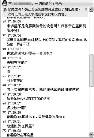 對(duì)方解釋說(shuō),高先生要拿到答案,首先必須買一套“2009微型口腔骨傳導(dǎo)耳機(jī)”。這套設(shè)備是將微型耳機(jī)放在考生嘴里帶進(jìn)考場(chǎng),出售答案者將答案通過(guò)電話或 QQ 發(fā)送給家長(zhǎng),然后由家長(zhǎng)手持發(fā)射器在考場(chǎng)外給考生傳送答案。如果高先生有意購(gòu)買口腔骨傳導(dǎo)耳機(jī),他們可以幫助高先生買,2000元一套。