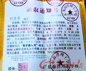 記者發現,這些發出錄取通知書的學校,全部都提出各種各樣令人心動的優惠條件。像某學校的錄取通知書上就寫著“零學費入讀”以及“享受用人單位補助的各種優惠政策”。明眼人一看,就知道這些錄取通知書很可疑。