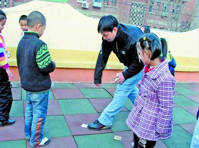 而在“玩”的時(shí)候,男女老師的不同就會(huì)顯現(xiàn)而出。據(jù)介紹,女老師一般是和孩子們玩一些如丟手絹之類活動(dòng)量較小的游戲,而男老師就會(huì)帶著孩子們玩一些活動(dòng)量較大的項(xiàng)目,比如競(jìng)技賽跑等。“男老師帶的班上的孩子會(huì)比較‘瘋’,這是我們?cè)敢饪吹降模⒆映錆M活力是件好事。”劉明陽(yáng)說(shuō)。