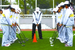 高爾夫這種高端運動,本學(xué)期正式走進了高中體育課堂。昨天,北京市普通高中新課程改革體育教學(xué)研討會在北京二中舉行,二中展示了包括高爾夫在內(nèi)的近10項體育選修課。據(jù)悉,高爾夫在北京個別小學(xué)中已列入課程,但在中學(xué)中還比較少見。