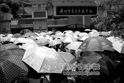 在育才實(shí)驗學(xué)校門口,從佛山開車過來的李女士告訴記者,他們一個早上跑了3個地方才找到考場,“一開始以為是育才中學(xué),跑到那邊才知道弄錯了,后來又跑去了附近的第109中,第三次才找到這里。”