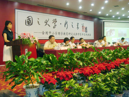 7月8日,全國中小學國學教育研究成都市青羊區現場會在蓉召開,來自北京、青島、重慶等地的上百名專家代表就國學教育在中小學校園內的開展進行了交流討論。據中國教育部語言文字應用管理司司長王登峰透露,有關部門準備邀請歌星演唱經典詩詞,以契合中小學生的年齡特點和心理需求。