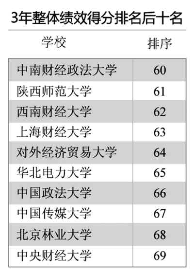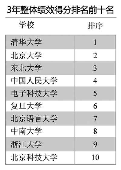 數據統計顯示:有近半數高校過去3年“投入多,產出少”;另有29所高校“產出高于投入”;還有7所高校投入和產出的排名一致,“投入產出相當”。整體績效得分前3名的高校分別是清華大學、北京大學、東北大學。