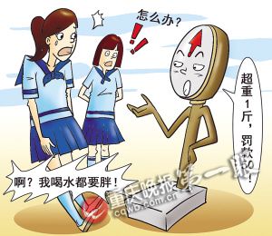 “一些學生依然喜歡零食,有的甚至一周長了七八斤,出于對學生前途的考慮,于是在本學期開始后不久向學生宣布了長胖一斤罰款50元的規定!崩铉髡f,這一規定宣布后,學生對體重控制就好多了。
