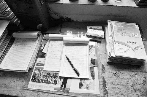 他死后,人們在他的家中,發(fā)現了7本尚未批改完的學生作文本。批改作文的眉批,字跡工工整整,他會一絲不茍地給學生們寫下評語:“注意句子之間的停頓和標點的運用”、“書寫認真,語句生動感人”。