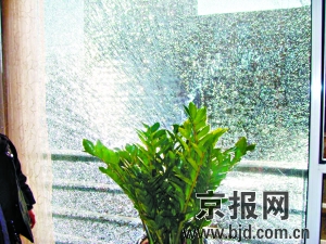 同時(shí)遭殃的還有2層張先生家、3層張女士家。張先生稱,他陽臺上一整塊雙層玻璃的外層成了個(gè)“大花臉”,而重新更換這樣一塊玻璃,需要從外地定做,花費(fèi)高達(dá)6500元。