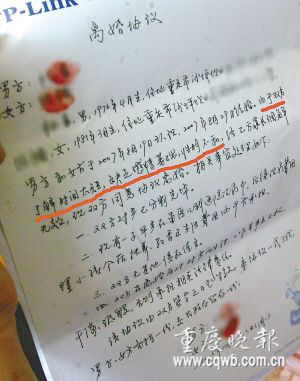 西南政法大學法律系研二學生李永(化名)在和女子向茗(化名)認識10天后閃電結婚,本月21日,向茗早產生下一子。昨日,記者從向茗處了解到,他們夫妻已擬好《離婚協議》,準備于近日到沙坪壩婚姻登記處登記離婚。