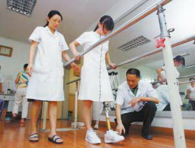 “截肢傷員完成正常人的動作消耗的能量是常人的三倍,故必須進行大量的訓練。”該院康復科主任劉宏亮告訴記者,災區截肢傷員安裝假肢只是第一步,更重要的是進行康復性訓練,使其重新具備行走以及舉物等能力。(記者 常宇 實習生 陽勐韜)