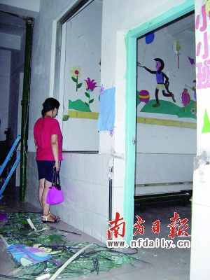 在幼兒園室內記者見到,整個幼兒園內一片狼藉,在幼兒園二樓發現很多窗戶被敲碎,地上到處都是碎玻璃,窗戶的鋁合金也被撬走了。記者還發現有一些窗戶的鋁合金已被撬起一邊,但因為太固定沒撬走,而室內教室的鋁合金全部被剪斷偷走了。