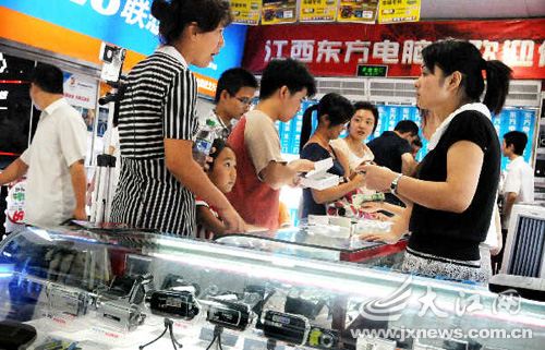 電腦、手機、MP3已經(jīng)成為目前一些家庭經(jīng)濟(jì)條件較好的大學(xué)生的“新三樣”,成為學(xué)生新學(xué)期的新裝備。某商場的一名導(dǎo)購員告訴記者,開學(xué)前的這段時間是數(shù)碼產(chǎn)品的銷售旺季,各商家均紛紛采取各種促銷手段來吸引學(xué)生群體。正在南昌市一電子數(shù)碼城購買MP3的大一學(xué)生小王告訴記者,考上大學(xué)時父母就答應(yīng)給她買手機和MP3,今天和媽媽一起出來挑選。