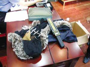 被查獲的高科技作弊工具及嫌疑人穿的“作弊大衣”。學濤 陳詠 攝