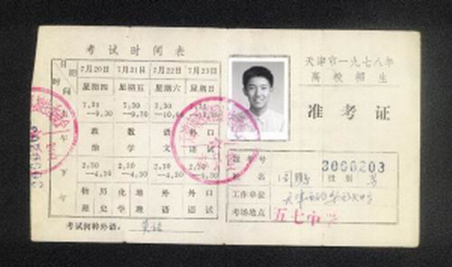 泛黃的卡片上,“天津市一九七八年高校招生準考證”幾個黑體字清晰依舊。周鵬告訴記者,在那個年代,對于普通的農家子弟而言,若想改變命運,最有效的方式就是高考。
