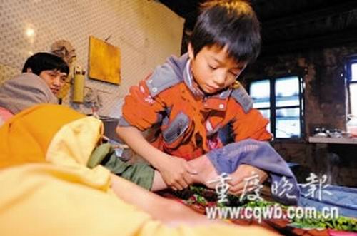 彭小林是城口縣河魚小學(xué)6年級(jí)學(xué)生,他1歲時(shí),家里的頂梁柱爸爸在山西煤窯挖煤時(shí)受傷,從此腰部以下全無知覺。5歲時(shí),媽媽和爸爸離婚,他便開始撐起這個(gè)家。
