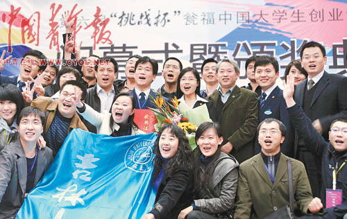華南理工大學(xué)的“華創(chuàng)之星”團(tuán)隊(duì)榮獲金獎。捧著獎杯,大學(xué)生們流出了喜悅的淚水。他們表示,理工類大學(xué)的學(xué)生并非只會學(xué)習(xí)和搞科研,“我們也很活潑,充滿了創(chuàng)業(yè)的活力”。