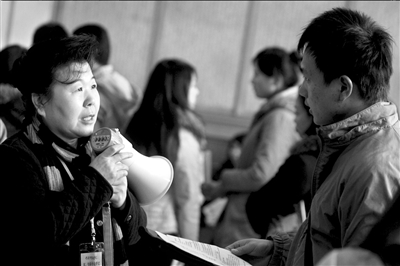 昨天上午8點(diǎn)30分,表演系考生現(xiàn)場報(bào)名確認(rèn)工作在中戲?qū)嶒?yàn)劇場開始。由于一些考生未在規(guī)定期限內(nèi)網(wǎng)上報(bào)名,中戲在劇場外設(shè)置了兩臺(tái)電腦,以方便考生補(bǔ)報(bào),F(xiàn)場還為考生和家長們安排了椅子和飲用水,一名老師拿著喇叭指引考生進(jìn)場報(bào)名,并為考生解答各種問題,現(xiàn)場未現(xiàn)擁擠場面。