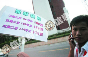 “賣樓、賣樓、105平方200萬。”前天下午5點,記者在海珠區濱江東路上目睹了一隊舉著木牌的地產中介在路上兜售叫賣二手樓。這種景象近日在廣州多處可見,由于加息、限購令對樓市的雙重影響,二手樓中介市場也遇到瓶頸,不少中介行已經使出比應對2008金融海嘯時更強的促銷招數。 看樓客普降三成 根據滿堂紅的統計數據顯示,自從加強版新政出臺后,廣州各區二手房的看樓客普遍減少了30%左右。記者了解到,不但看樓客減少了,一些原先有意賣房換大屋的業主也變得謹慎起來了。 “我們現在每天都要出來巡街。”在濱江東路上,一位舉牌的合富中介小黃告訴記者。不僅僅是這家中介公司,附近的多家中介近日都自制了巡街用的木牌,這種木牌類似于運動會開幕式運動員進場的引導牌,牌子上貼著花花綠綠的紙張,寫著各類“筍盤信息”。一邊巡街,一些中介口中還念念有詞,大聲叫賣。路過的街坊無不覺得好玩,住在附近的石小姐說,“見過在路上叫賣包子的,還沒見過叫賣房子的”。