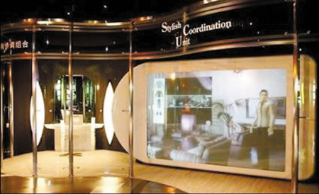 未來客廳———墻壁可以根據(jù)用途隨時變化,可以化作明亮的窗戶,化作隔壁的房間,甚至化作購物或觀看體育比賽的空間。桌面上還擺放著各種各樣的裝飾品,參觀者一旦觸摸到這些小東西,一連串的卡通影像就會從手下自動地跳躍而出,人們情不自禁地產(chǎn)生談話交流的沖動,感受生活的溫馨自在。