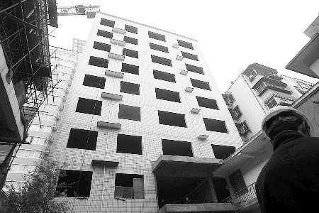 在現場,焦支隊長指著該樓周邊居民樓對記者說,這個樓距西邊華山公寓不足5米,與南邊家屬樓不足15米,與東北角正在施工的樓僅兩米多。為保證居民安全,6層以上開始實施人工拆除,6層以下才能用機械拆除,預計6層以上人工拆除需兩天多時間。