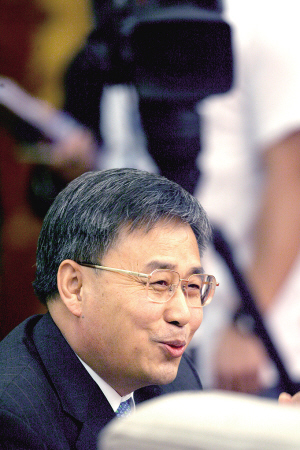 郭樹清代表在十七大分組討論會上發(fā)言。(圖片來源:京華時報 張斌/攝)