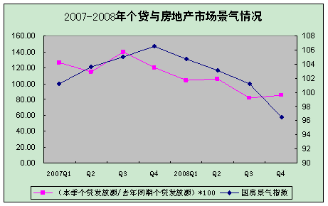住房公積金個人貸款與房地產(chǎn)市場景氣情況密切相關(guān),2007年四季度以來,由于房地產(chǎn)市場表現(xiàn)低迷,個人貸款發(fā)放呈下降趨勢,2008年三、四季度個貸發(fā)放額同比分別減少18.34%、14.95%,全年同比減少165.64億元,降幅為7.52%。2008年末,全國個貸率(個人貸款余額/繳存余額)為50.30%,同比減少2.53個百分點。