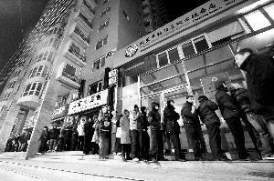 老張為女兒買了套二手房,本來可以由中介業務員來代為排隊納稅。但他放心不下、怕出差錯,決定親自出馬熬夜排隊。前日19時許,他開始在銀行旁的朝陽區第二地稅所門外守候。至昨日清晨4時許,已有50余人排在其后,并肩“戰斗”。