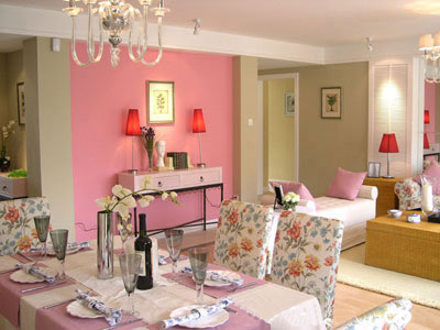 深淺不一的粉色裝扮的客廳,給人一種典雅舒適、柔和喜悅的輕松感。將一整面墻全都涂成淺粉紅色,作為裝飾墻,再配合深粉紅色的沙發,就能營造一道鮮明的主色調。走在柔和的粉紅色地板上,來到隨風飄逸的淺粉色印花薄窗簾前,陽光也變得溫柔委婉起來,蜷縮在沙發里,旁邊的茶幾上擺放著一個淺色的圓筒形花瓶,幾枝淡粉色的百合靜靜地開著,散發出淡淡的芳香,品嘗著粉色鑲金茶具里的咖啡,捧上一本書,下午的時光變得悠閑而充滿小資情調起來,這才符合年輕人自由慵懶的生活風格。