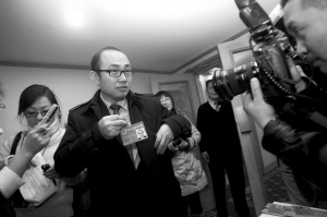 來自崇文團的潘石屹代表是首次當(dāng)選市人大代表。昨天早上9點,已有不少記者守候在五洲大酒店的門口專門等待這位知名商界人物。10點,潘石屹代表自己背著雙肩背包前來報到,剛一亮相鎂光燈就閃成一片。“我來晚了吧。”第一次當(dāng)選代表的總裁卻顯得有點局促不安。