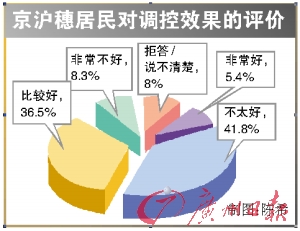 對于中央及各地政府的救市效果,居民褒貶不一,其中,認為有積極效果的受訪者超過了四成(5.4%認為非常好,36.5%認為比較好)。