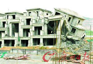 受金融風暴影響,東莞虎門一樓盤建筑面積約600平方米的大戶型別墅出現(xiàn)銷售困難的窘態(tài)。為盤活市場,該樓盤前兩日開始將一套已完成整體框架結構的大戶型別墅拆除,預計要拆除類似別墅共15套。