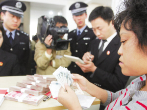 兩名法警立即沖上去,與女子爭奪在一起。最終,女子被帶走,信封被搶了回來,法官從信封里倒出數十個建行存折和數十張銀行卡,并找到一張記錄該公司12個銀行賬戶的單子,“戰果不錯!”執行法官笑了。