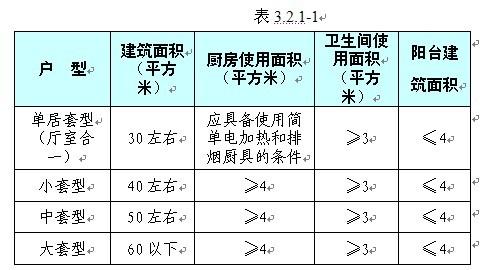2.2.1 公共租賃住房戶型設計面積標準如下表3.2.1-1