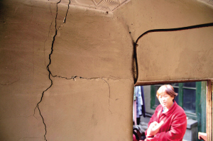 從今年7月開始,二街社區(qū)一些居民相繼發(fā)現(xiàn)自家平房墻壁和地面開裂。記者昨天在二街西醋房胡同2號院的張女士家中看到,房屋多處墻壁結合處確有裂縫,裂縫從地面貫通到房頂,寬處約有半厘米。開裂嚴重的兩間房已經(jīng)被騰空了。