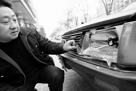 昨天中午,在“翠園·錦榮世家”小區的地下車庫前,業主馬志宏捂著自己的左眼,激動地說,前晚8時許,他像往常一樣將車開到小區的地下車庫,卻被看車人告知他沒有停車卡不能進入。馬志宏詢問原因得知,小區物業當天下午開會制定了一條規定——沒有購買停車位,沒有小區停車卡,不能將車停入車庫。隨后,雙方發生口角,并產生肢體沖突!芭赃呎玖宋辶鶄保安,一看我跟看車的吵架,就一起上來打我,把我的左眼打傷了。”馬志宏松開手,記者看到,他的左眼明顯腫脹,呈青紫色,眼中還布滿血塊。馬志宏向記者出示了鄭州市第一人民醫院的診斷證明:“左眼瞼明顯腫脹、淤血,瞼結膜明顯充血,球結膜大片出血、水腫,角膜水腫……左眼視力明顯下降,為0.25!薄八麄冇锌啥嗳耍盐业能囈苍伊恕!敝钢\噹烨暗囊惠v奧迪車,業主曹明奇對記者說,和馬志宏一樣,前晚10時許,他來停車時也被告知沒有停車卡不能停車。曹明奇說,他看暫時無法協商,就想先把車里的孩子送回家,沒想到剛走出不遠,就有七八個不明身份的人把他的車砸了。記者看到,車前兩個大燈和一個尾燈全被砸碎(如上圖),車身上也有許多擦痕。