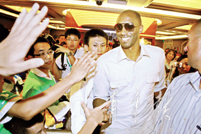 船艙里,穿著科比球衣的志愿者望眼欲穿。志愿者孫濤身上的科比8號球衣昭示著他鐵桿球迷的身份。“我喜歡他11年了!”還沒等記者發(fā)問,他便急不可耐地向記者介紹起自己身上地裝備。除了身上那件05版球衣,他還從包里小心翼翼地掏出一件連標簽還沒來得及撕掉的24號球衣,“24代表了超越喬丹的愿望,23+1嘛。”這個時候,眼里還是滿是即將見到偶像的興奮和激動。