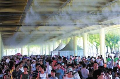 客流為何在昨天忽然集中釋放?記者走訪發現,因為昨天氣溫較前幾天高溫天下降不少,成為游客紛至沓來的重要因素之一。盡管昨天的最高溫度仍達34攝氏度,但較上周末逼近40攝氏度的高溫已下降不少,因此一些原本準備上周前來參觀的游客改到昨天入園參觀。