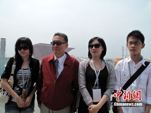中新網(wǎng)8月28日電 臺灣著名作家李敖今日攜全家繼續(xù)上海世博行。從上午九點半開始,李敖一行先后參觀了西班牙館、意大利館和沙特館,領(lǐng)略異國風情和文化。在沙特館頂部的觀景臺,他以中國館為背景與全家合影留念。