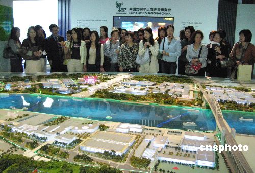 十月二十三日,常住上海的近百名臺商太太“組團”考察2010年上海世博會新規劃。這是上海世博會申辦成功后,滬上最大規模的“臺灣團隊”造訪上海世博局。臺商太太們來自滬上最知名的女臺胞社團“移居上海太太俱樂部”,她們相約為上海世博會當義工。中新社發 許曉青 攝
