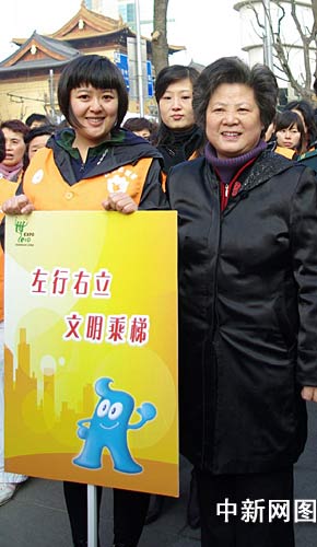 上海世博會倒計時四百天來臨之際,位于上海繁華城區(qū)的靜安區(qū)啟動“公共秩序日”集體行動,聚焦行路、駕車、停車、讓座、乘車、先下后上、乘電梯等七大類公共場所文明行為,八支由社區(qū)居民、郵政人員、學(xué)生等組成的志愿者服務(wù)隊在此間亮相。