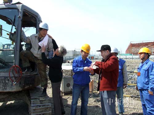 中新網(wǎng)上海4月3日電 (舒祖康)昨天上午,上海市浦東新區(qū)上鋼社區(qū)的近80名離休老干部來到了附近的世博工地,在建設(shè)中的盧森堡館前,向?qū)氁惫綜1標工程世博建設(shè)者送上毛巾、茶杯和書籍等慰問品。這些年過古稀的“老革命”們在此寄語世博建設(shè)者:“我們來就是為你們打氣、鼓勁。希望你們把世博場館建設(shè)得更好。”