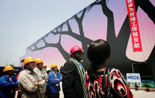 5月15日,由1萬多件鋼結(jié)構(gòu)搭起的非洲聯(lián)合館已挺立在世博園區(qū)內(nèi)。樹木、沙漠、海鷗、動(dòng)物、建筑……這些富有強(qiáng)烈非洲特征的元素將呈現(xiàn)在非洲聯(lián)合館的外立面上,勾勒出非洲大陸?yīng)毦叨鄻有缘娘L(fēng)貌,展現(xiàn)非洲的古老文明和勃勃生機(jī)。在15日舉行的非洲聯(lián)合館外立面施工啟動(dòng)儀式上,記者獲悉非洲聯(lián)合館外立面設(shè)計(jì)方案已正式確定,并將全面實(shí)施。