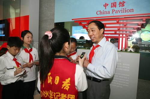 5月19日,上海世博局黨委副書記、紀(jì)委書記許偉國接受了上海市第六次少代會代表及《少年日報》小記者的采訪。小記者們就上海世博會學(xué)生優(yōu)惠門票、小朋友如何參與上海世博會等問題進行了提問。