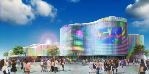 在外觀方面,民企聯(lián)合館大膽采用了曲線型設(shè)計,具有豐富的色彩和表現(xiàn)形式。根據(jù)參觀者觀看角度的不同以及同一天里陽光照射方位的變化,展館外觀還會隨之呈現(xiàn)出多姿多彩的景象和生動有趣的表情。到了夜晚,除了影像之外,還配以照明、音響以及特殊演出手法,整個展館流光溢彩、精彩紛呈。據(jù)悉,擔(dān)任該項目總承包商的是曾經(jīng)承接2005年愛知世博會日本政府館出展項目、具有豐富世博會經(jīng)驗的日本三大廣告公司之一——ADK。