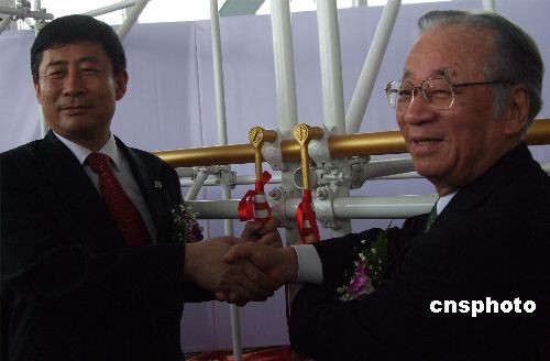 7月4日,上海世博會日本產(chǎn)業(yè)館在“中國第一廠”江南造船廠的舊址內(nèi)“豪華”奠基。該產(chǎn)業(yè)館是日本民間企業(yè)第一次如此大規(guī)模地聯(lián)手參展本國以外的世博會。上海世博會事務協(xié)調(diào)局局長洪浩與日本產(chǎn)業(yè)館參展合同公司代表堺屋太一共同啟用將用于展館建設的金色螺母,攜手見證奠基。中新社發(fā) 鄭瑩瑩 攝