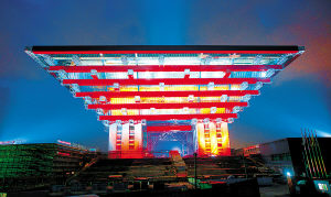 何鏡堂:中國館從著色到外形,都含有深厚的傳統中國文化元素。但是,如果只做到這些是遠遠不夠的。向世界呈現充滿活力、和諧發展的現代中國,亦是我們的設計初衷。
