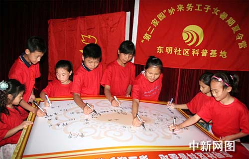 整個(gè)歡樂夏令營(yíng)系列活動(dòng)從7月9日至8月18日歷時(shí)一個(gè)多月。期間,主要有“看浦東、看世博”外出參觀、“動(dòng)手動(dòng)腦”小制作、健身智能比賽、“我們是新上海人”外來務(wù)工子女學(xué)說上海話,以及“東明社區(qū)我的家”等活動(dòng),可謂周周有活動(dòng),內(nèi)容豐富,精彩有趣。